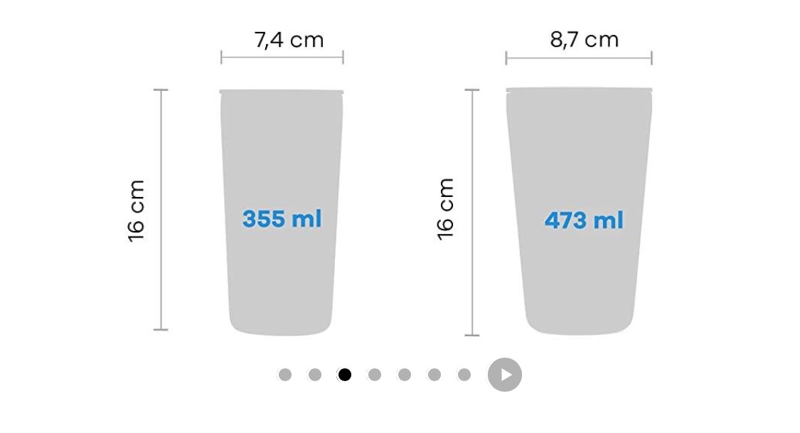 용량은 473ml(16oz)입니다. 보통 용량 473ml의 텀블러를 사용하면 손 세척하는데 문제없습니다.