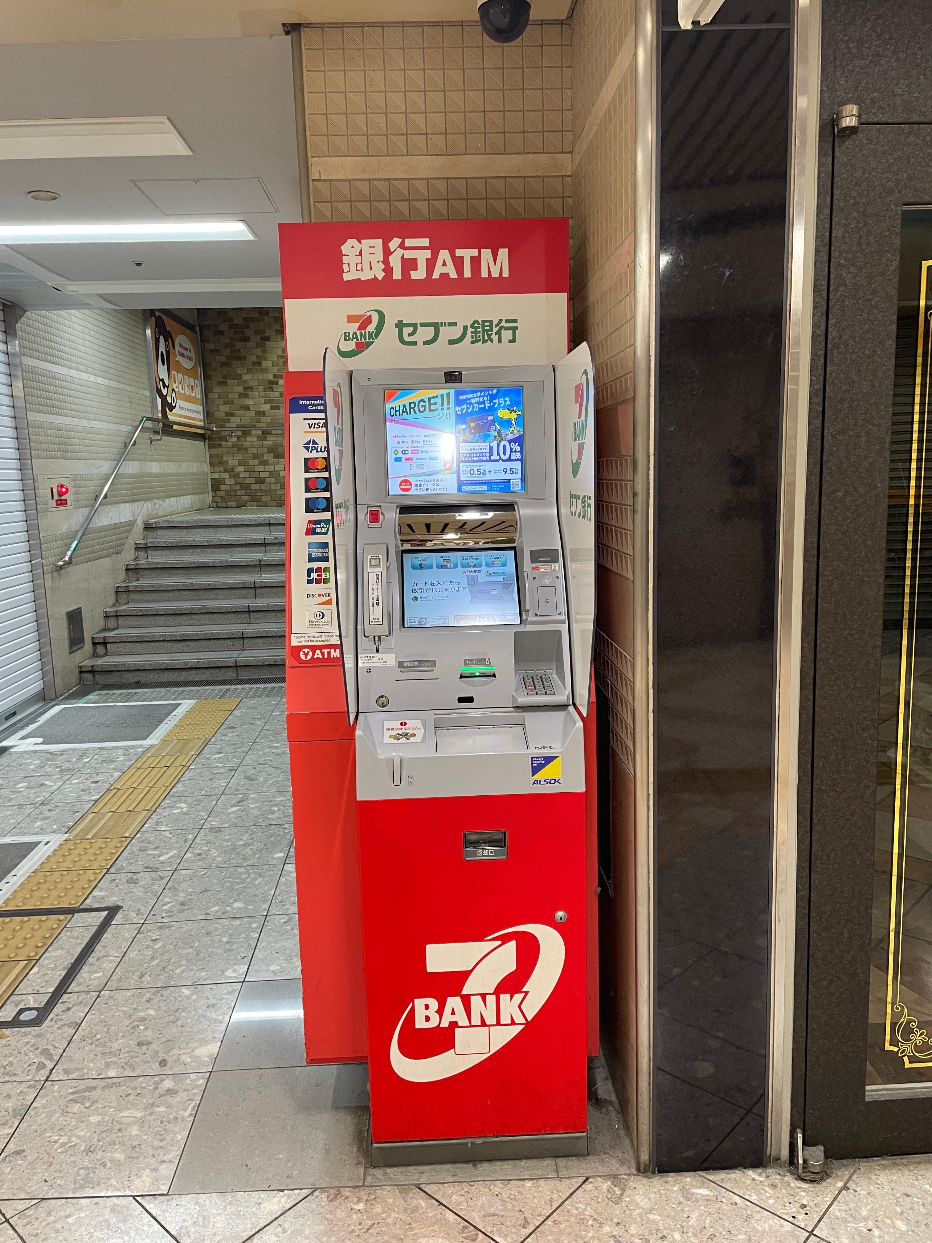 오사카와 교토를 돌아 다니면서 세븐 일레븐 편의점을 흔하게 찾아볼 수 있어서 세븐뱅크 ATM으로 현금 인출하기 더 편리했음. 지하 쇼핑몰에서도 찾아 볼수 있음. 오사카&교토 모두 이온뱅크 ATM은 길거리를 돌아다니면서 찾기 조금 어려웠음.