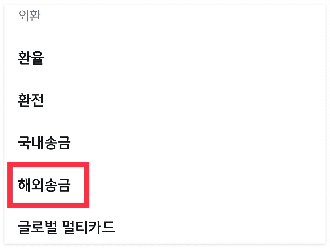 그다음 외환 목록에서 '해외송금'을 선택합니다.