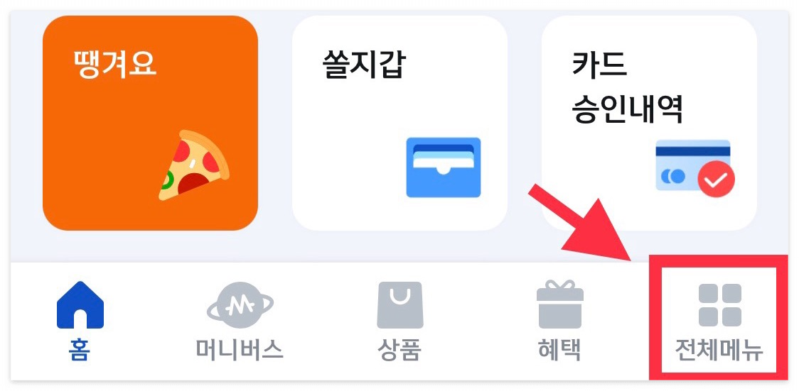 먼저 신한은행 쏠(sol) 앱 하단 '전체메뉴'를 선택합니다.