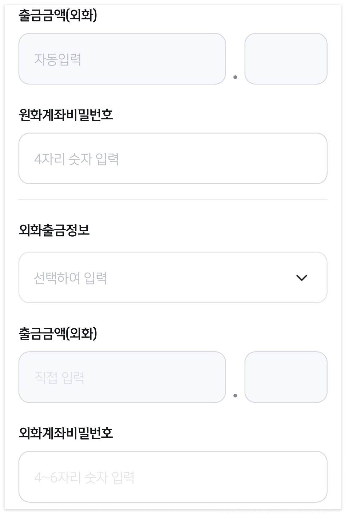 원화, 외화 계좌 비밀번호를 각각 입력한다.