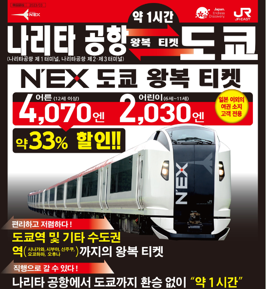 정보 갱신 날짜:2021-6-28 N'EX 도쿄 왕복 티켓 나리타공항과 도쿄를 왕복하고자 하시는 분에게 추천합니다. 나리타공항에서 도쿄로 바로 이동하실 수 있습니다.