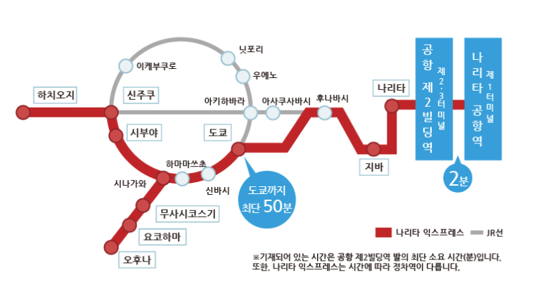 ▶도쿄 나리타 공항열차 목적지까지 소요시간