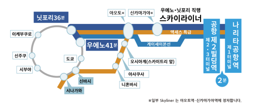 | 스카이라이너 | 36분 | 41분 | 53분/ 환승 1회 |