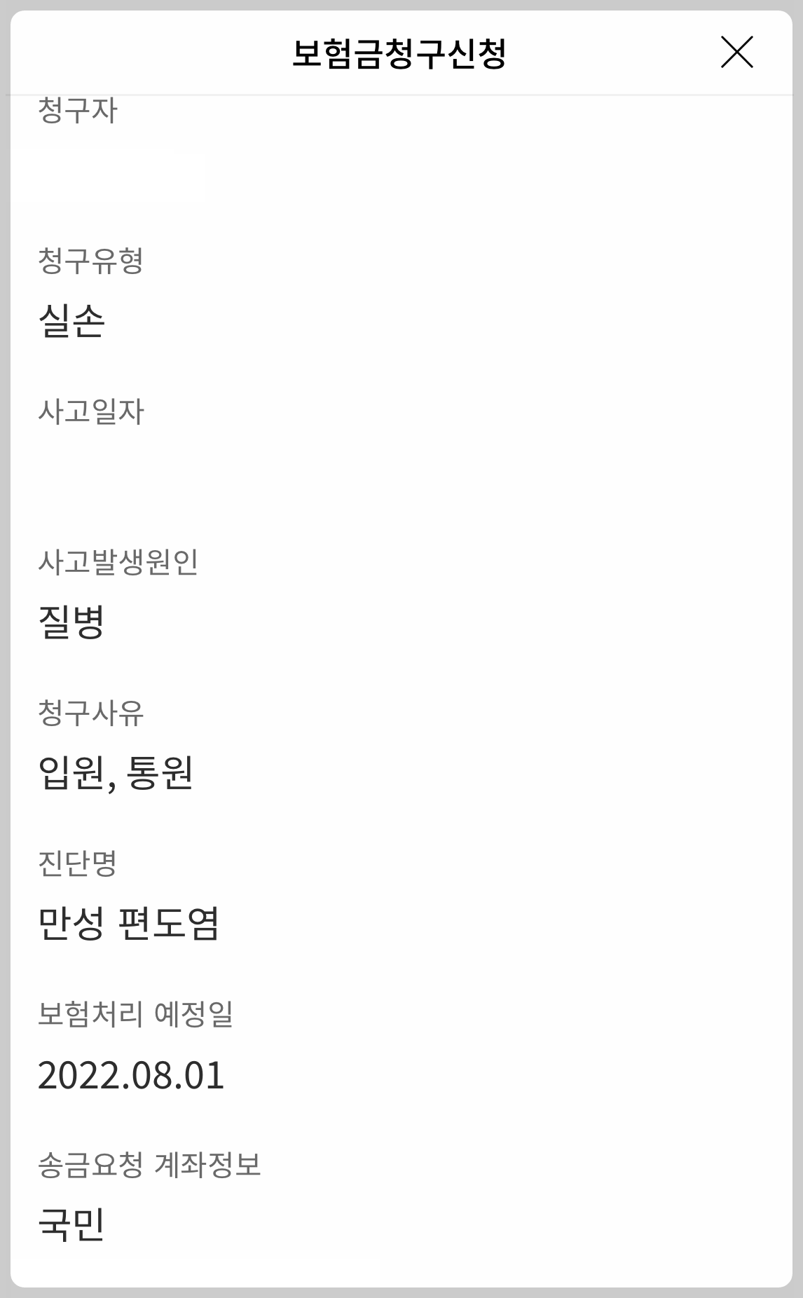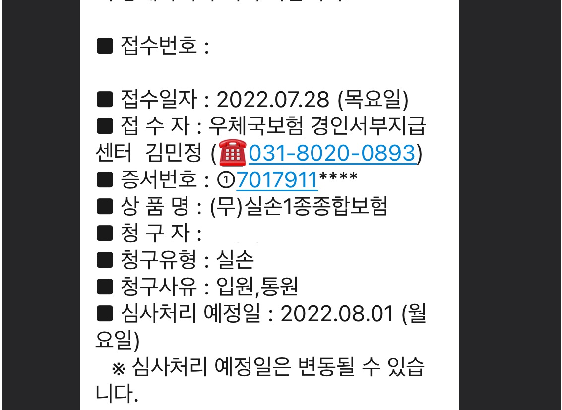 보험청구가 정상으로 접수되었다는 카톡이옵니다.