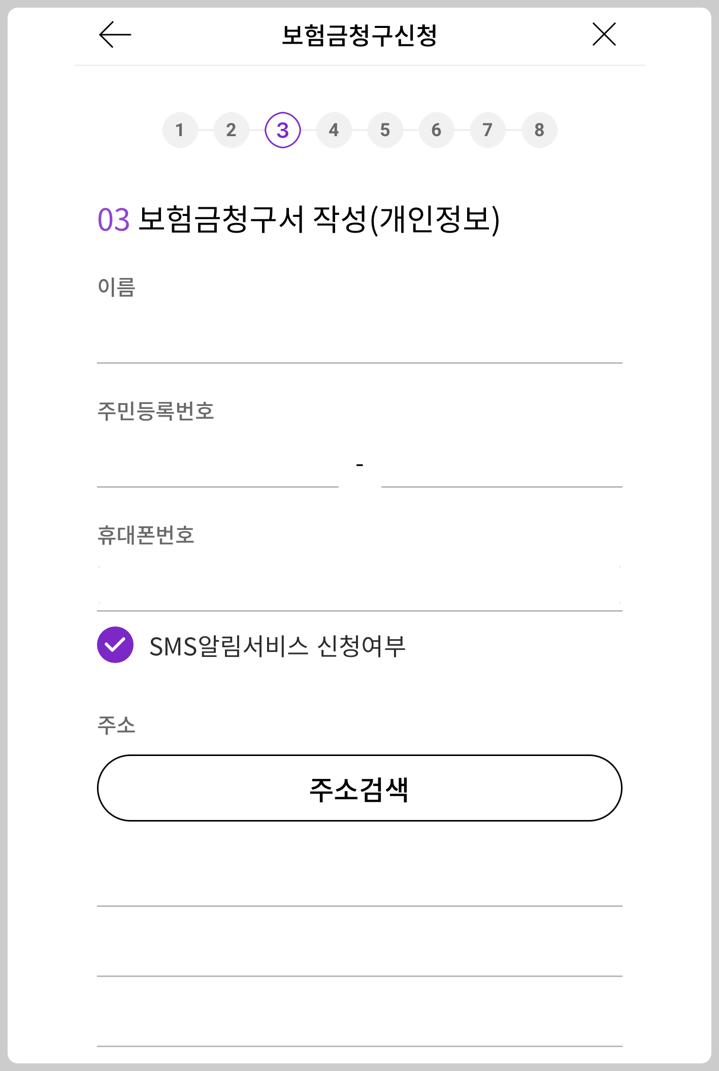 접수 시 확인사항 '다음' 클릭 -> 보험금청구서 작성